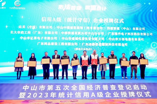 为推进中山市统计领域信用建设工作,发挥统计信用A级企业的示范引领作用,近日,中山市第五次全国经济普查登记启动仪式举行 ,现场还同步举行2023年统计信用A级企业授牌仪式。