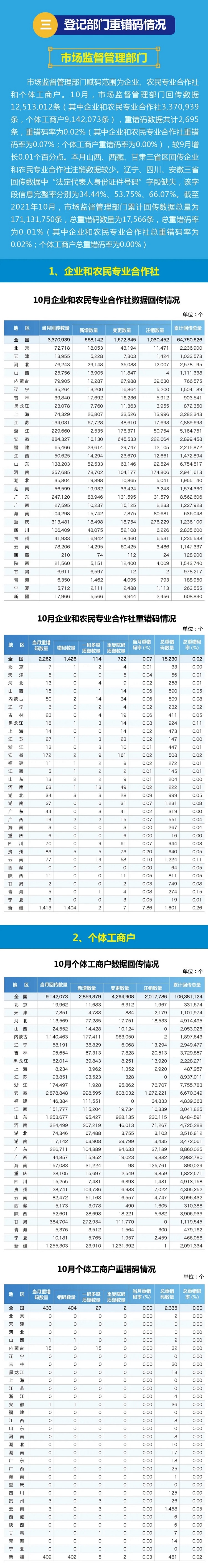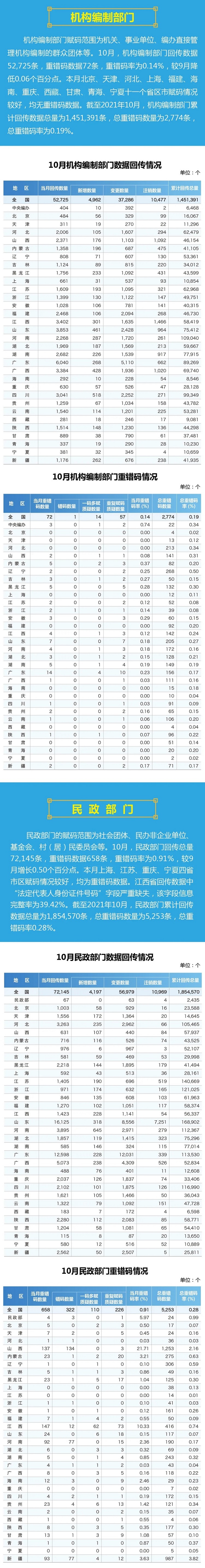 2021年国家法人和其他组织统一社会信用代码数据10月动态
