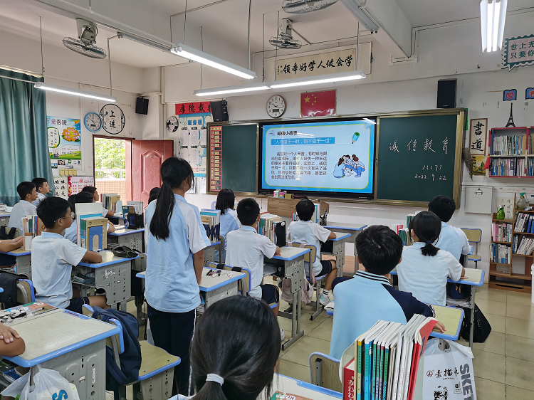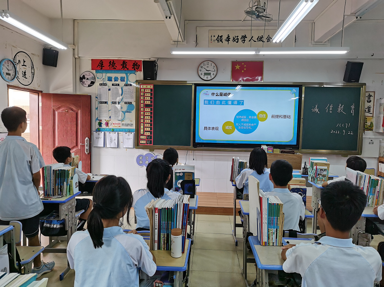 课上,班主任向同学们讲述了诚信的重要性,强调诚信不只体现在一些重要的大事上,还体现在生活中的小事里,希望同学们践行诚信,从小事做起,发扬诚信精神,同时强调学习的重要性,并分享自己的经验和心得体会。