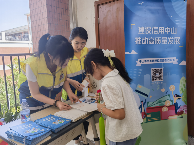 为弘扬诚实守信传统美德,拓宽诚信知识宣传的深度和广度,全面推进诚信建设工作,近日,中山市城市管理和综合执法局机关党委联合中山市港口镇群乐社区党委在港口镇大丰小学开展“‘双联双助’进校园,普法宣传促诚信”主题宣传活动。